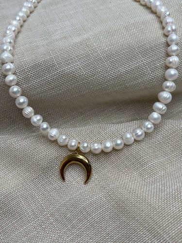 🌙 Perlový náhrdelník s príveskom mesiaca