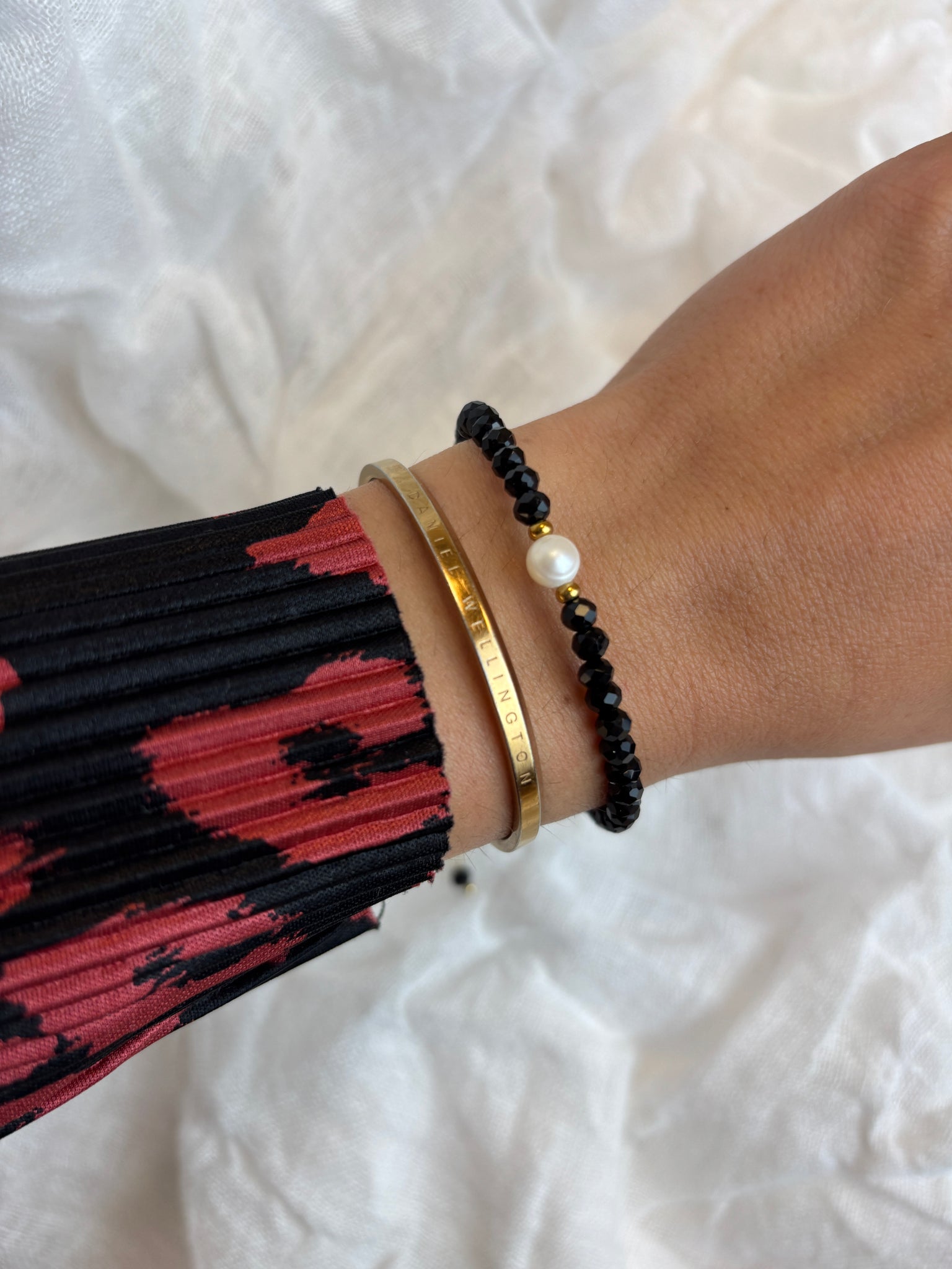 Elegantný náramok s riečnou perlou a čiernym krištáľom